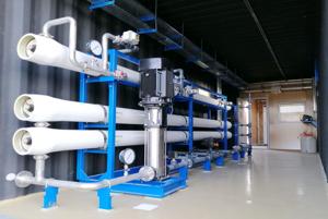 BWRO compact unit consists of only one container which includes BWRO skid (Vessels, HPP, Chemical dosing System and MCC room)